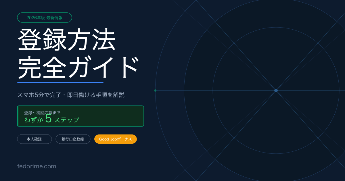 スポットバイトルを使ってみたいけど、登録の手順がわからない——そういう方に向けて、登録開始から初回応募までの流れをまとめました。スマホさえあれば5分程度で完了します。