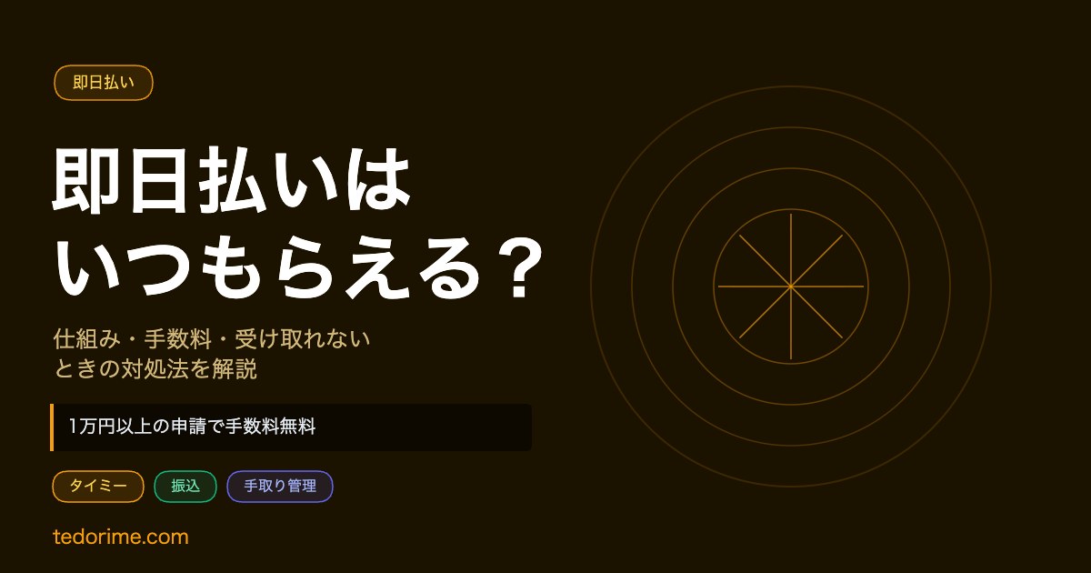 この記事では、タイミーの即日払いの申請タイミング・着金時間・手数料・受け取れないときの原因と対処法をまとめて解説します。
